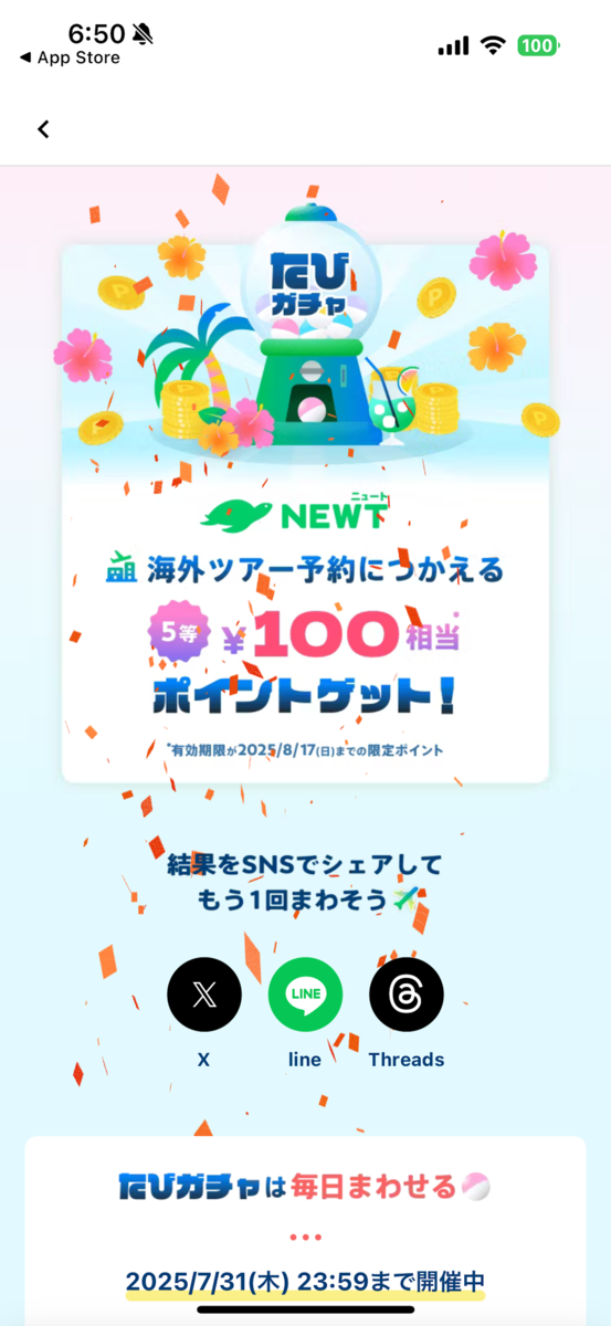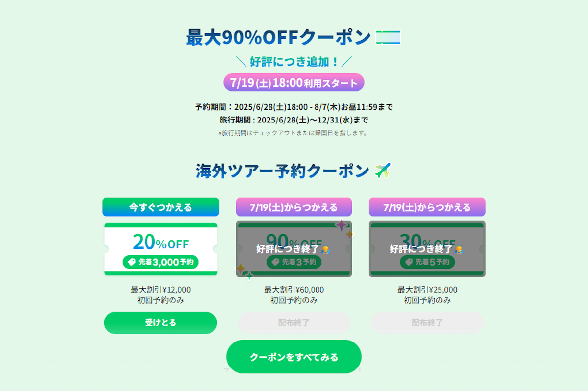 またNEWTではクーポンやポイント配布もあり、さらなる割引が期待できます。原稿執筆時の7月22日には、初回予約のみ限定で20%オフ(最大割引 1万2000円/先着3000予約)のクーポンを配布していました。またサマーセール中は7億円分のポイントを山分けする「たびガチャ」を開催。たびガチャは毎日回せるので、旅行を計画しているなら会員登録をしてチェックしてみるのもいいでしょう。