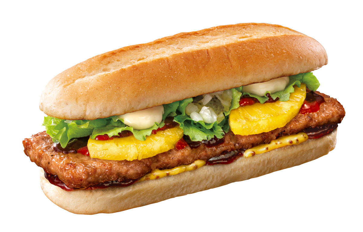 さらに「スパイシーBBQパインリブサンド ポーク」は、焼きパインと旨辛ソースを合わせたポークパティを全粒粉入りロールパンで挟んだ一品。ピリ辛の中にパインの酸味が効いた、夏向けの仕上がりです。