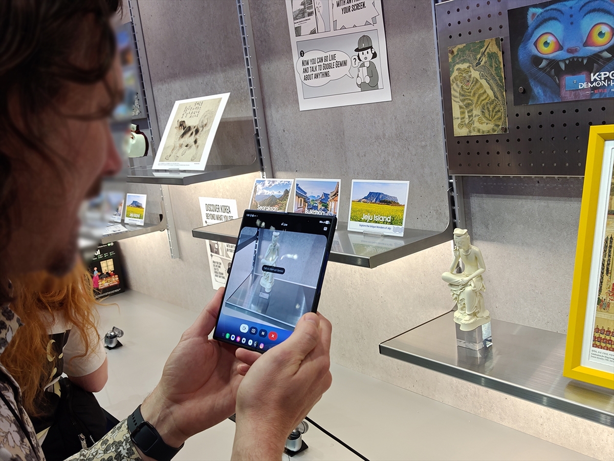 また、さまざまなオブジェが置かれており、Galaxy Z Fold7の2億画素カメラで細部まで撮影したり、あるいはAI機能を使った写真の加工、さらにカメラを通した画面全体をGemini Liveで共有する新しい機能など、さまざまな体験が可能です。