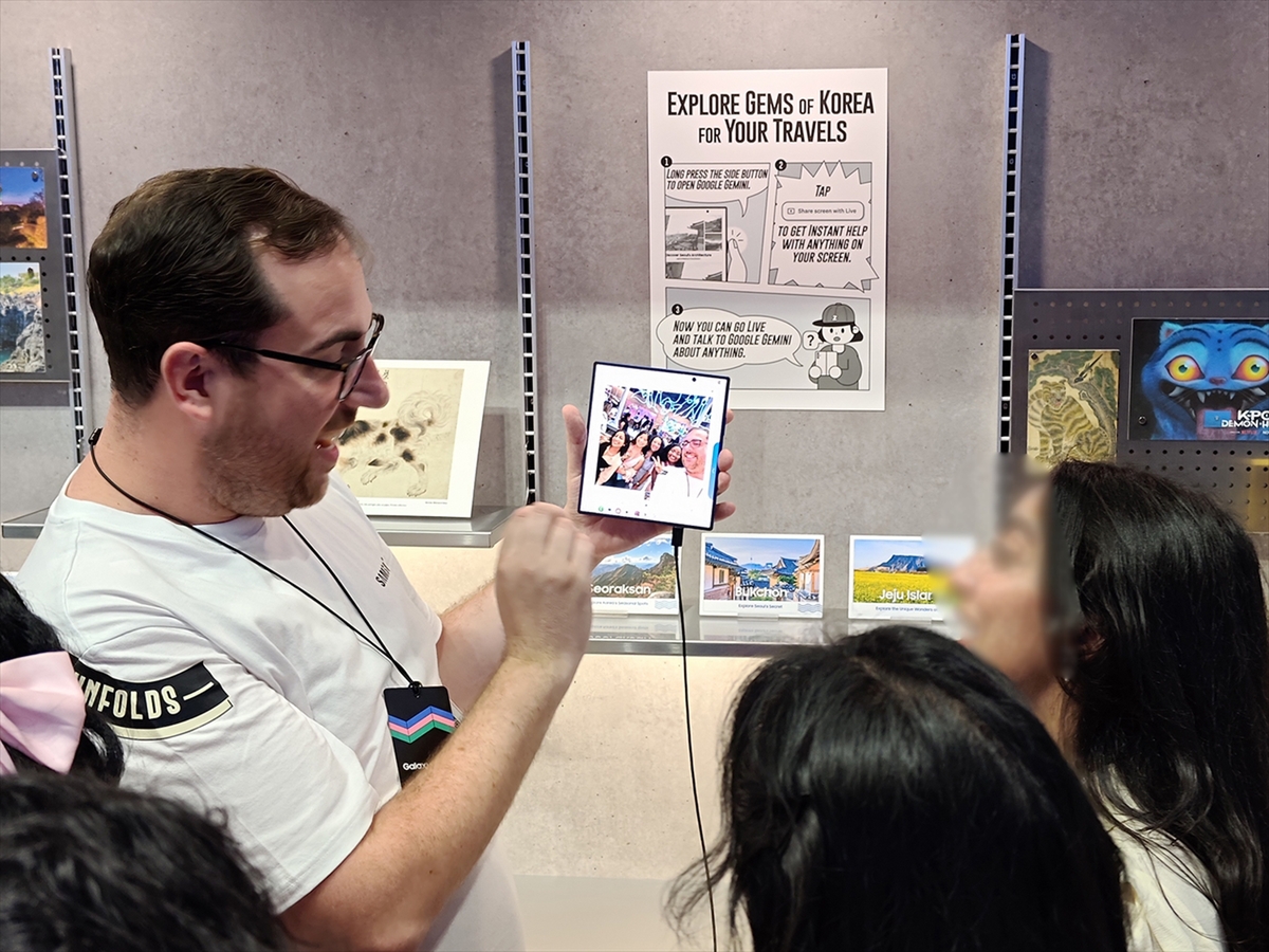 個別の機能体験ではスタッフが丁寧に操作を教えてくれるほか、日常生活の中のどんなシーンで役立つか、といった具体例も案内してくれます。Galaxy Z Fold7の大画面ならAI機能のデモも、より見やすくわかりやすく伝わります。