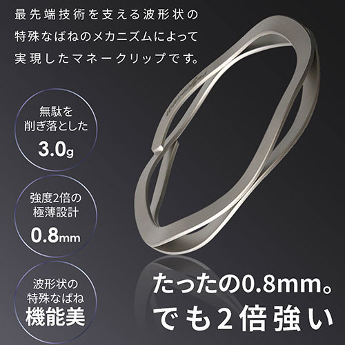 アスキーストアでは、消耗品になりがちな二つ折りバネの弱点を克服した新しいマネークリップ「MAENI WAVECLIPS MONEY CLIP」を発売中です。創業50年を超える老舗ばねメーカーが考案した品質の高い日本製で、こだわる人のためのWAVECLIPSです。