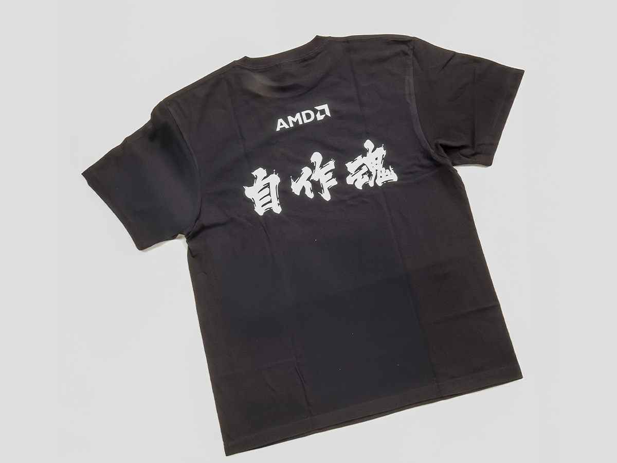 「自分はAMD派なんで」と自負する自作erなら、迷わずゲットしたいのがこのTシャツ。背面にAMDロゴに加えて力強く「自作魂」の文字が躍る気合いの入りよう。このTシャツを着てPCショップに入るには、なかなか勇気が要りそうですね! なお、前面には胸にワンポイントでAMDロゴと「RYZEN/RADEON」のネームが入っています。背中で語りたい方はぜひ!