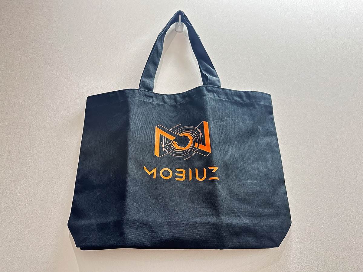 BenQのゲーミングブランド「MOBIUZ」のロゴ入りトートバッグ。黒地にオレンジのロゴが映えるシンプルなデザインです。ノートPCやタブレットPCはすっぽりで入る収納力で、ほかにも小物を詰め込めそうなサイズ感。ちょっとしたお出かけやイベント参加時はもちろん、普段使いにもぴったりです!