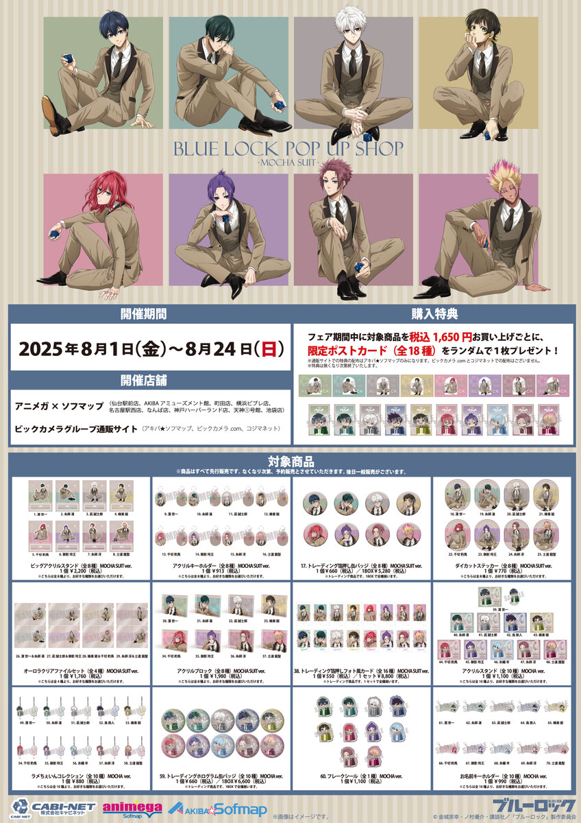 TVアニメ「ブルーロック」の描き下ろしスーツ姿グッズが登場!「MOCHA SUIT」ポップアップショップが全国のソフマップで開催