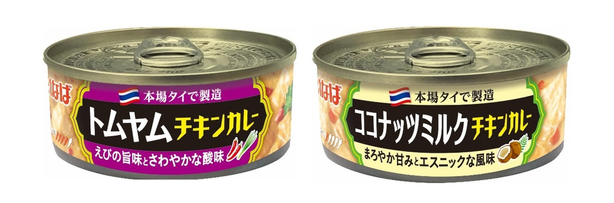 いなば食品は、缶詰シリーズ「タイ・エスニックカレー」に新たに「トムヤムチキンカレー」と「ココナッツミルクチキンカレー」を追加し、ラインナップを拡充したと7月22日に発表しました。