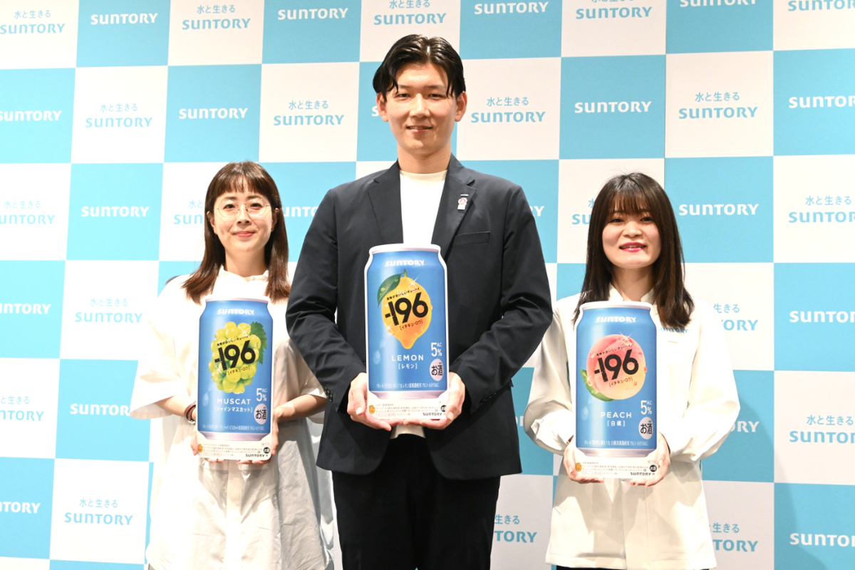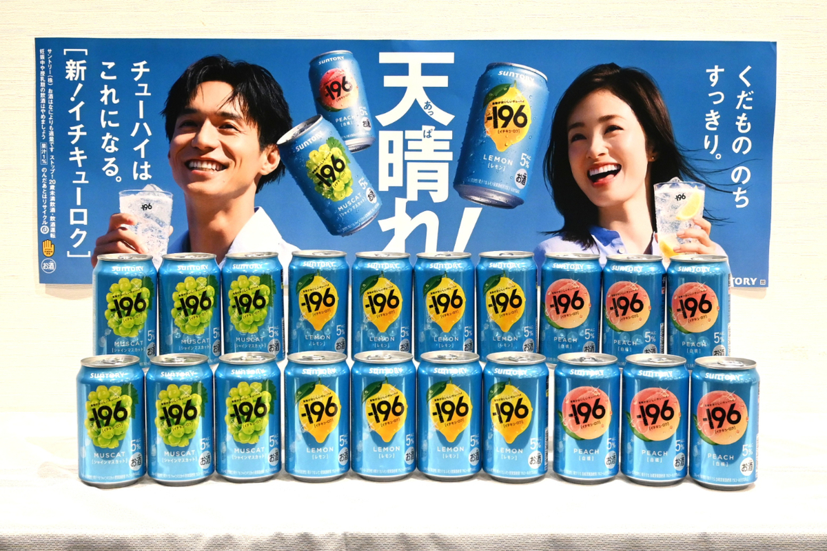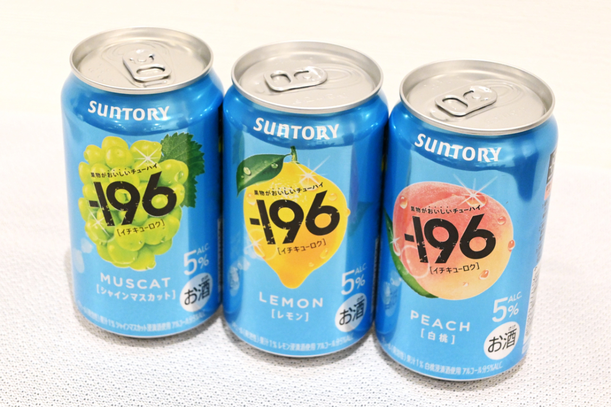 サントリーは、新缶チューハイ「-196(イチキューロク)〈レモン〉」「同〈シャインマスカット〉」「同〈白桃〉」の3種を、7月29日から全国で発売します。アルコール度数はすべて5%で、350ml缶は174円、500ml缶は237円。