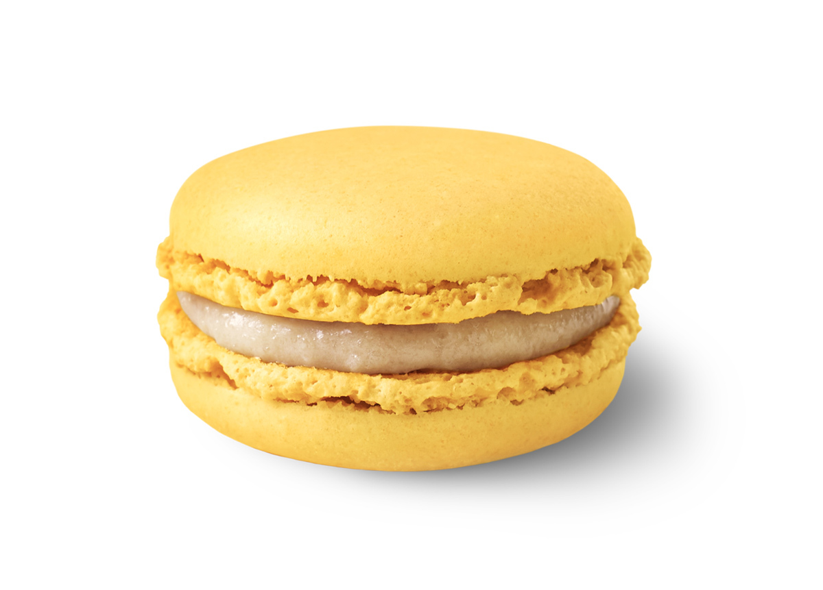 アーモンド入りのサクふわ生地に、ばななピューレ入りのやさしい甘さのクリームをサンドしたまろやかな味わいのマカロンで、“ベリーシリーズ”との相性も抜群とのことです。