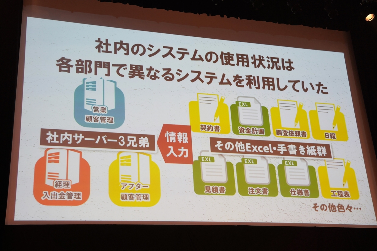kintone導入前のスモリ工業は、“システムの乱立”という課題を抱えていたが、それを大きな問題と捉えていなかったという。部門ごとに異なるシステムを利用しており、個人管理のExcelや紙の情報をこの「社内サーバー3兄弟」に入力。もちろんデータを確認するにはそれぞれのシステムにアクセスする必要があった。
