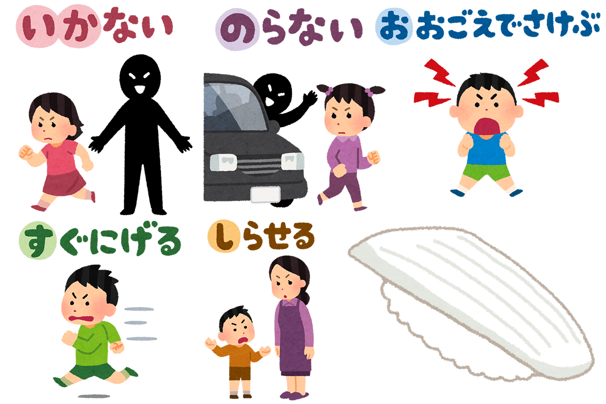 子ども版の「いかのおすし(知らない人について『いか』ない、知らない人の車に『の』らない、危険を感じたら『おお』きな声を出す、危険を感じたらその場から『す』ぐに逃げる、何かあったら大人に『し』らせる)」をご存じの人も少なくないでしょうが、「大人版」は以下の通りです。