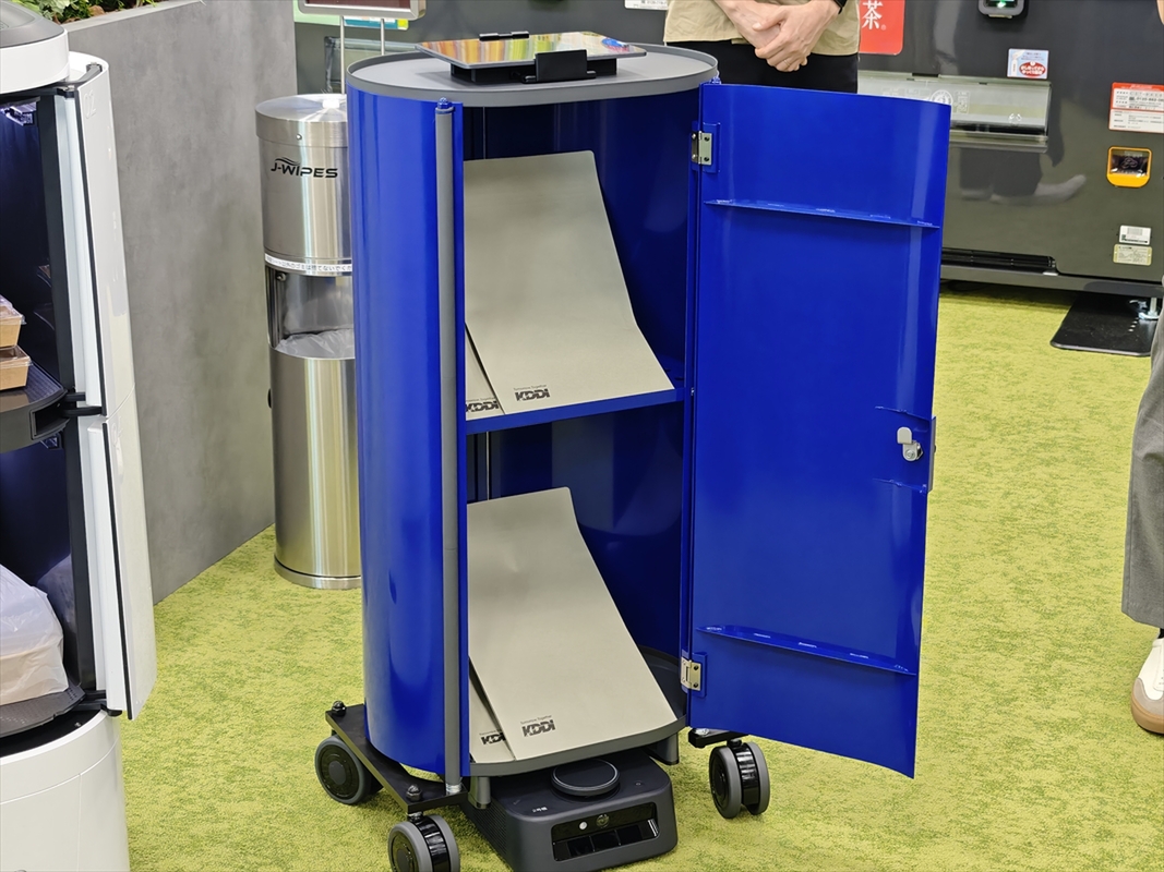 そして、社員の庶務業務を軽減し、創造的な業務に時間をシフトさせるため、配送や移動販売などのロボットが導入されています。アプリで自分がいるフロアまでローソンの商品を持って来てもらったり、社内便を持って行ってもらったりなど、所狭しとロボットが動いていました。