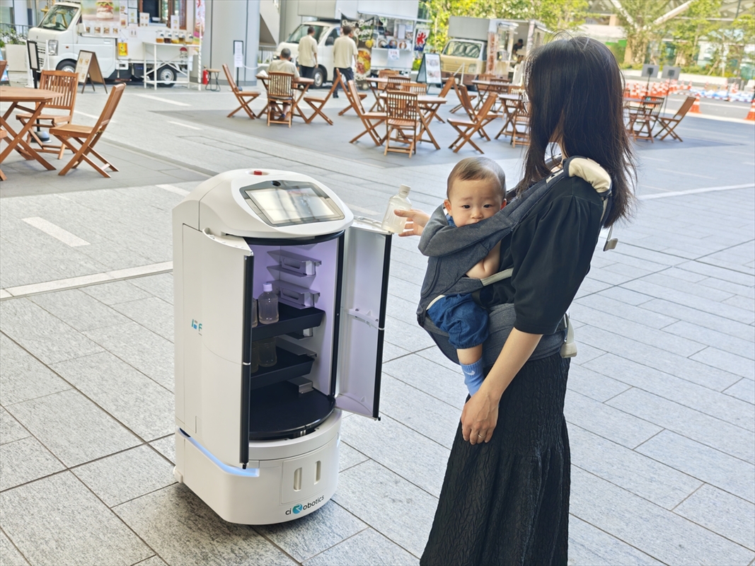 さらに、(高輪ゲートウェイ駅の場合)駅前広場では、そこに居合わせた人の属性に合わせてロボットが商品を配布します。音楽イベント参加者には熱中症対策としてスポーツドリンクを配るなどの例が挙げられています。