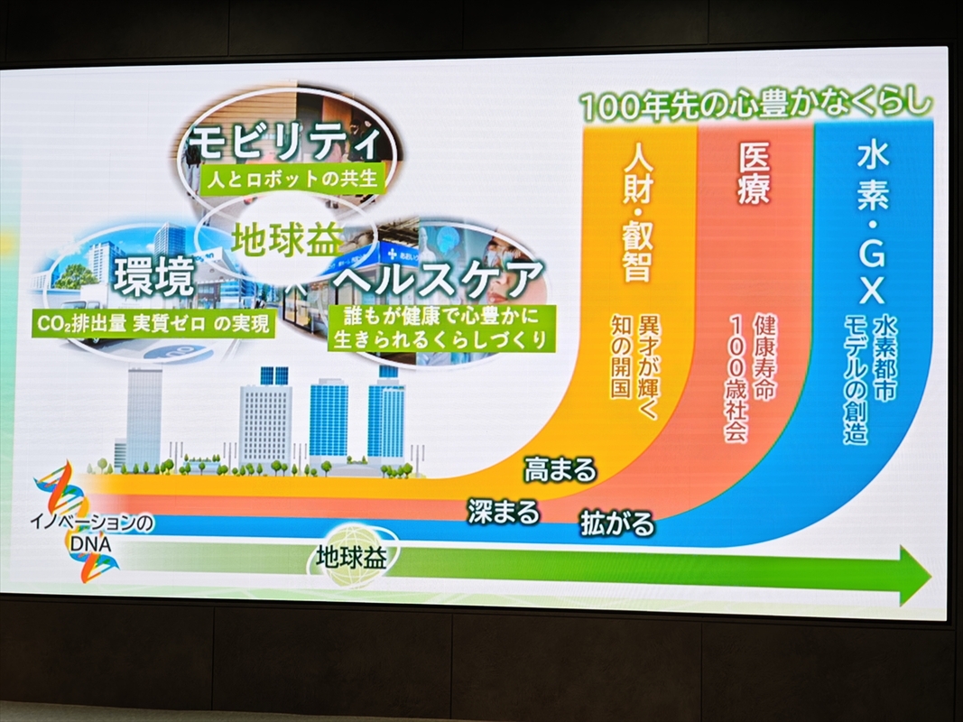 2、モビリティ:人とロボットが共生する世界を目指し、多様な交通手段を立体的に繋ぐMaaS(Mobility as a Service)の構築や、エアモビリティなどの新規事業展開も視野に入れている