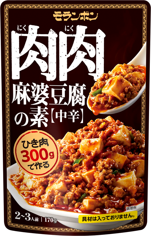 モランボンは、家庭用合わせ調味料「肉肉麻婆豆腐の素」(2~3人前170g、270円)を8月10日より発売する。