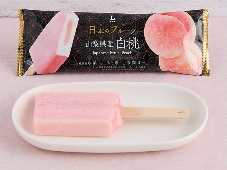 もも果汁・果肉を30%使用したフルーツアイスで、そのうち71%は山梨県産白桃の果汁やピューレです。果肉ソース入りで食感の違いも楽しめます。7月25日発売です。
