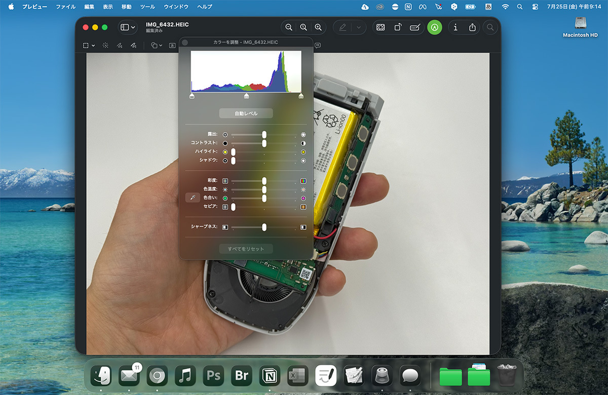 強化されたアップル純正の「プレビュー」アプリの便利さは、iPadOS 26でも実感しました。macOS Tahoeではさらに素晴らしかったです。写真のリサイズや解像度変更のほか、カラー調整に画像内へのテキストの書き込みなど、簡易な編集作業が「プレビュー」アプリからまとめて手早くできます。筆者はふだん、取材で撮影した写真の編集作業を某社の有料ソフトで行なっていますが、簡単な調整であればmacOSに無料で付いてくる「プレビュー」アプリでまかなえそうです。