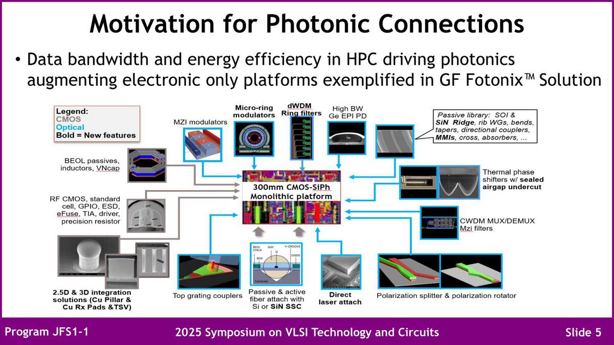VLSIシンポジウム解説の4回目は、JFS(Technology / Circuits Joint Focus Session)1-1として行なわれたGlobalFoundries(GF)の"Key Technologies and Performance Aspects for Electrical and Optical Interconnects"という招待講演の内容を取り上げたい。