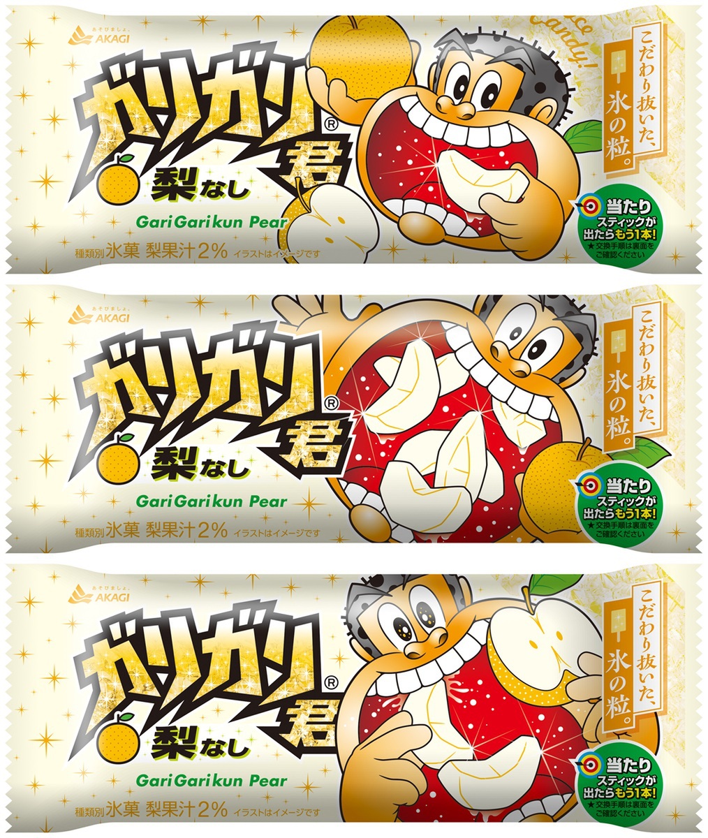 「ガリガリ君梨」は梨アイスの中に、シャリシャリとした食感が特徴の梨かき氷を入れたアイスキャンディーです。毎年人気のフレーバーで今年は7月29日より発売。