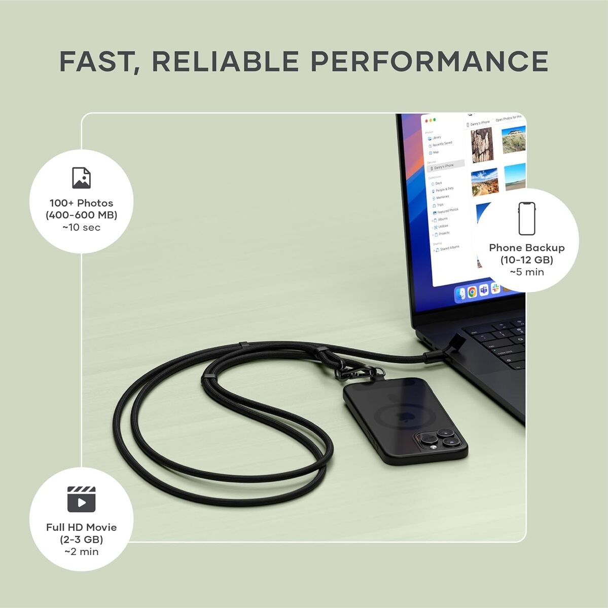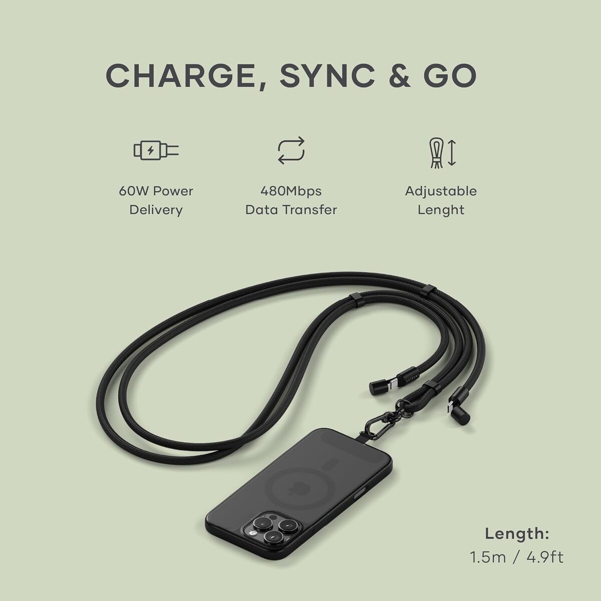 | Satechi OntheGo USB-Cランヤードケーブル 60W急速充電 480Mbpsデータ転送 クロスボディストラップ 調節可能な編組コード (1.5m) iPhone/Android対応 (ブラック) |