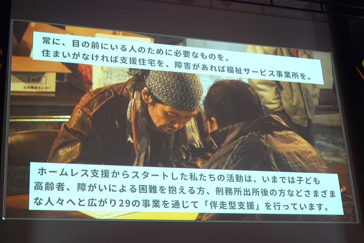 NPO法人抱樸は、「誰もが見捨てられない社会」の実現を目指し、30年以上前にホームレス支援から活動を開始した。今では、子どもや高齢者、障害を持つ人、刑務所出所者など、様々な困難を抱える人々に対して、全29事業を通じた伴走型支援を展開している。