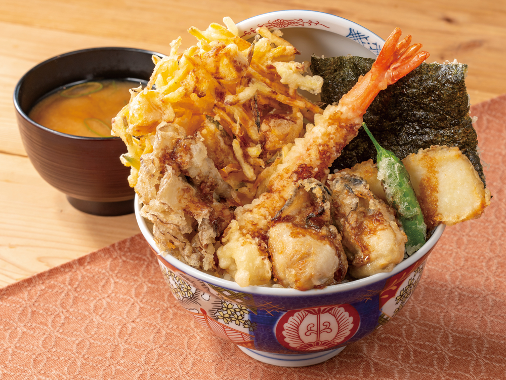 秋限定「大粒牡蠣とかき揚げの秋天丼」