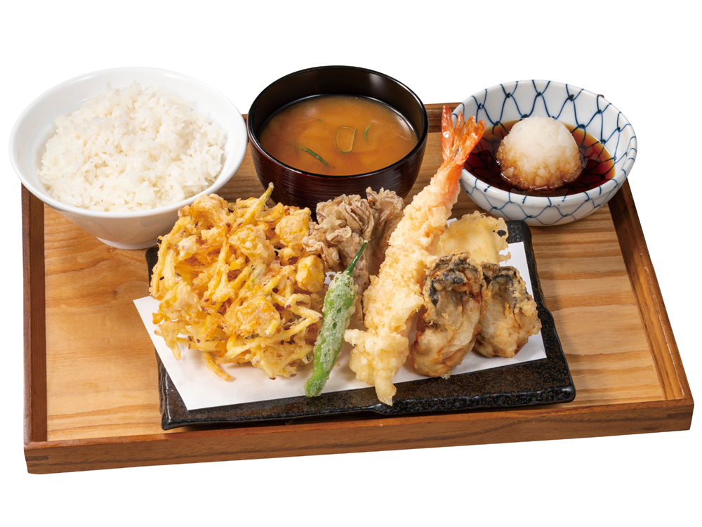 また、牡蠣の天ぷらを主役にした天盛り定食も用意。いずれも、テイクアウトでも購入可能です。