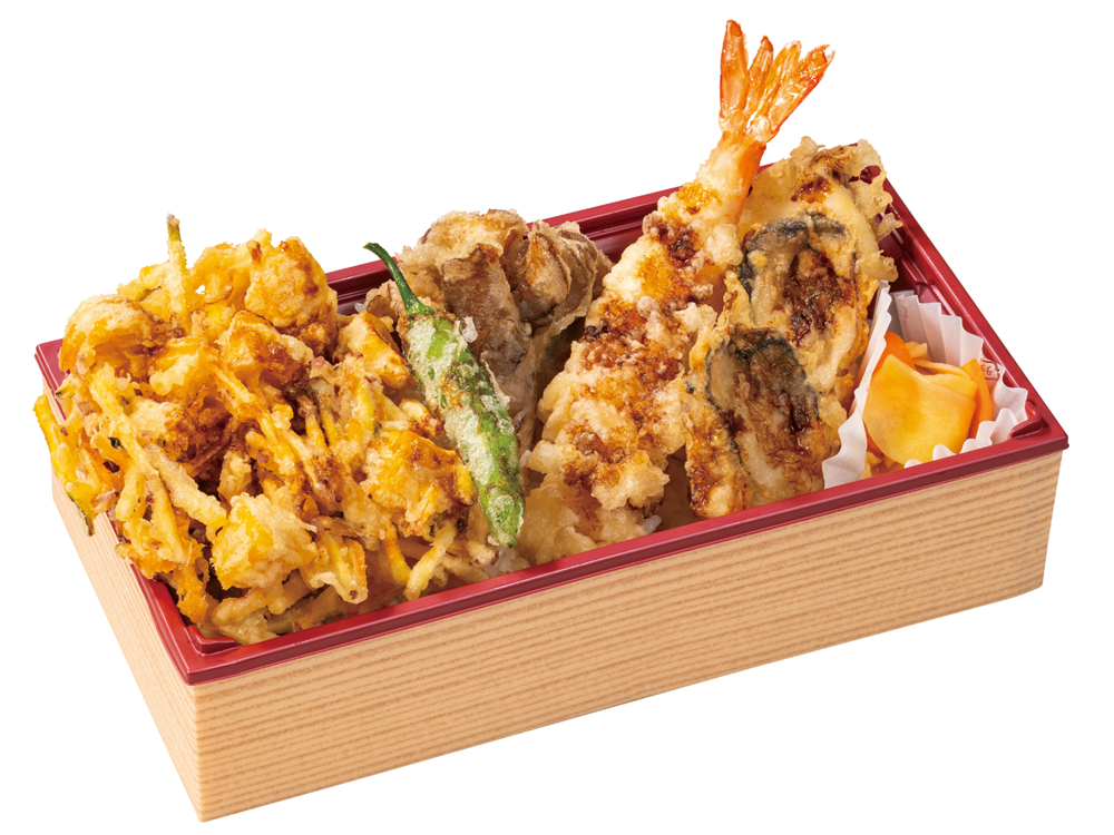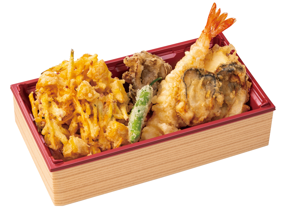 (内容;牡蠣、海老、秋野菜のかき揚げ、イカ、舞茸、しし唐)