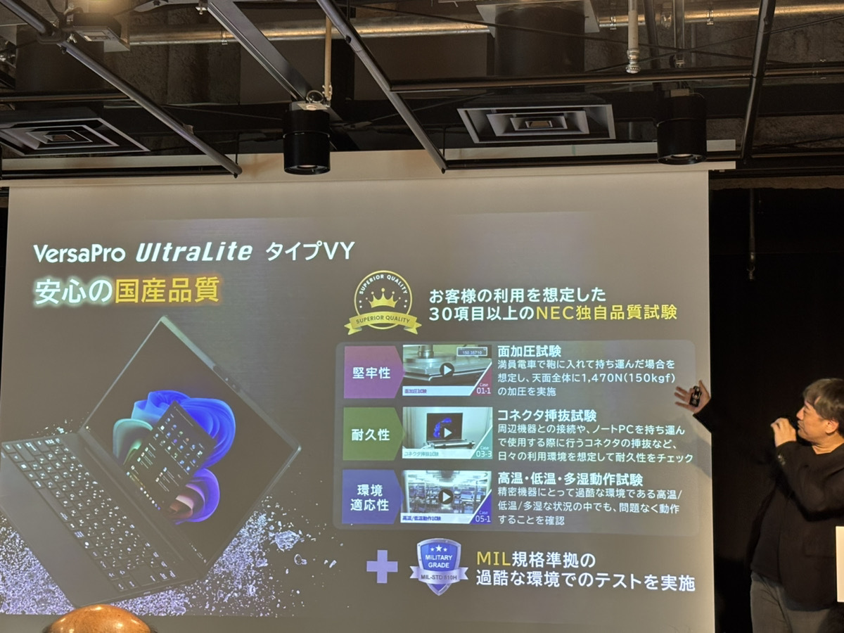 NECパーソナルコンピュータ(以下、NEC PC)は7月30日、法人向けのCopilot+PC「VersaPro UltraLite タイプVY」を発売した。9月中旬に出荷開始する予定。