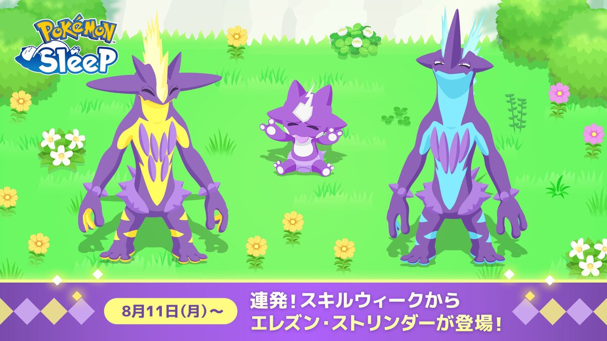 ポケモンは7月30日、スマートフォン向けアプリ「Pokémon Sleep(ポケモンスリープ)」で2025年8月11日より新たなどくポケモン「エレズン」「ストリンダー」を追加すると発表した。