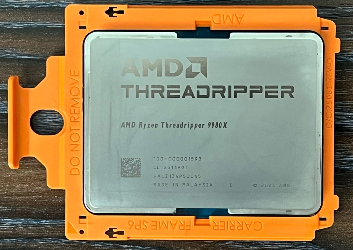 Threadripper 9000シリーズは7000シリーズとソケット形状(sTR5)を共有している関係上、形状・デザインともに前世代からまったく変わっていない。大きく変わったのはパッケージくらいのものだ。