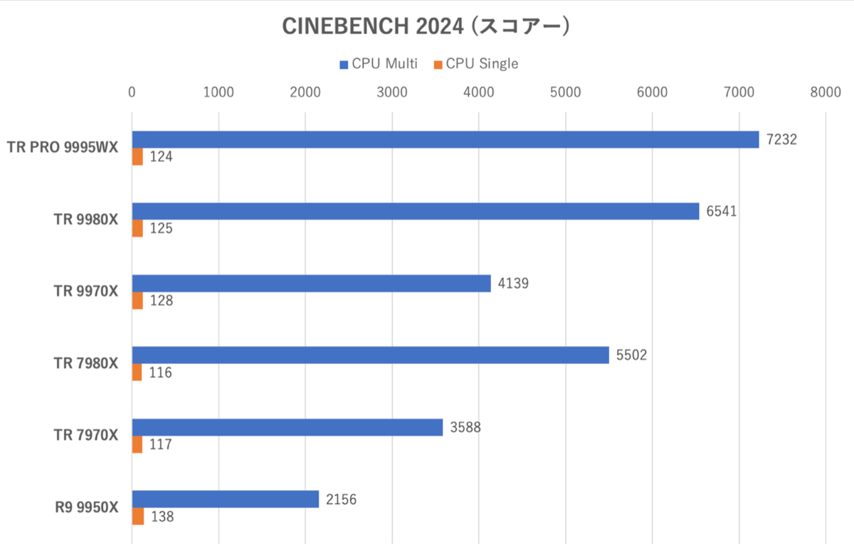 ただシングルスレッド性能に関しては、Ryzen 9 9950Xに勝てたThreadripperはなかった。シングルスレッド勝負であれば、まだRyzenに分があるといえる。