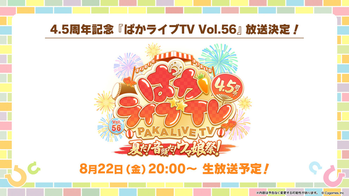 4.5周年に向けさまざまなキャンペーンも開催予定。次は8月22日に「ぱかライブTV Vol.56」が生放送されるので、要チェックだ。