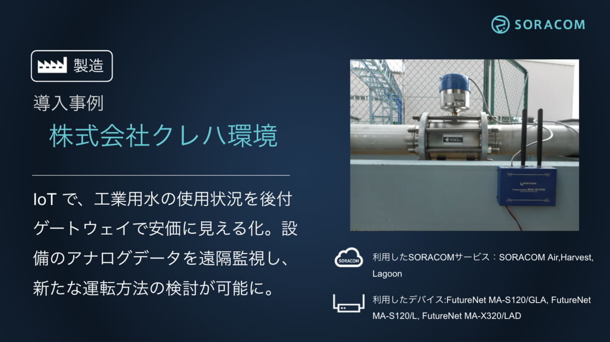 事例としては、センサーが出力するアナログ信号をゲートウェイが計測することで工場用水の使用状況を把握したクレハ環境や輸送トラックの位置情報を取得し、物流の課題を解決したAGCなどが挙げられる(関連記事:内製化で実現したAGCの物流クライシス対応 位置情報とIoTがどこまでできたのか?)。