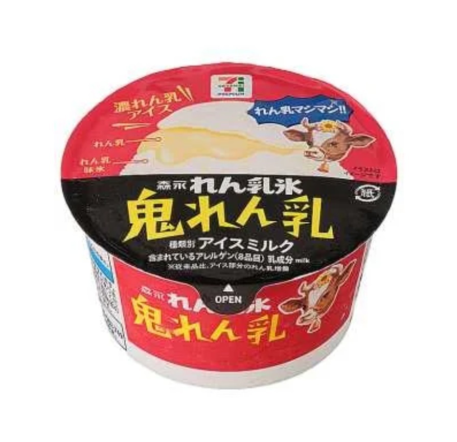 「セブンプレミアム 森永 れん乳氷 鬼れん乳」は、れん乳アイス・れん乳味氷・れん乳3つの食感で楽しめる、れん乳づくしの氷菓カップ。