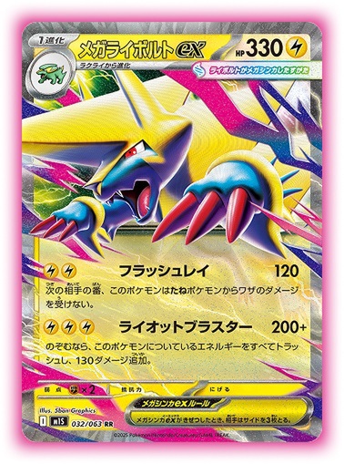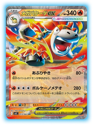 本パックには「メガシンカex」ポケモンが含まれているのが特徴で、それぞれ高いHPと強力なワザや特性を持つ。ただし強力な反面、きぜつしたとき相手はサイドを3枚とる。