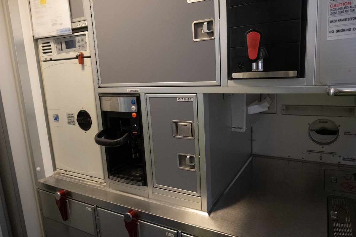 2階部分にはギャレーもあって機内食も用意されていて、パイロットは休憩時間に自分で温めて食事をとるとのこと。ちなみに長距離フライトに備えて、2階部分にはパイロットが休憩するベッドも用意されています。