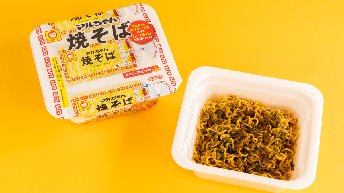 「マルちゃん焼そば3人前」の味をカップ焼そばで再現した商品です。スパイスのきいた粉末ソースで仕上げ、ふりかけ付きとなっています。