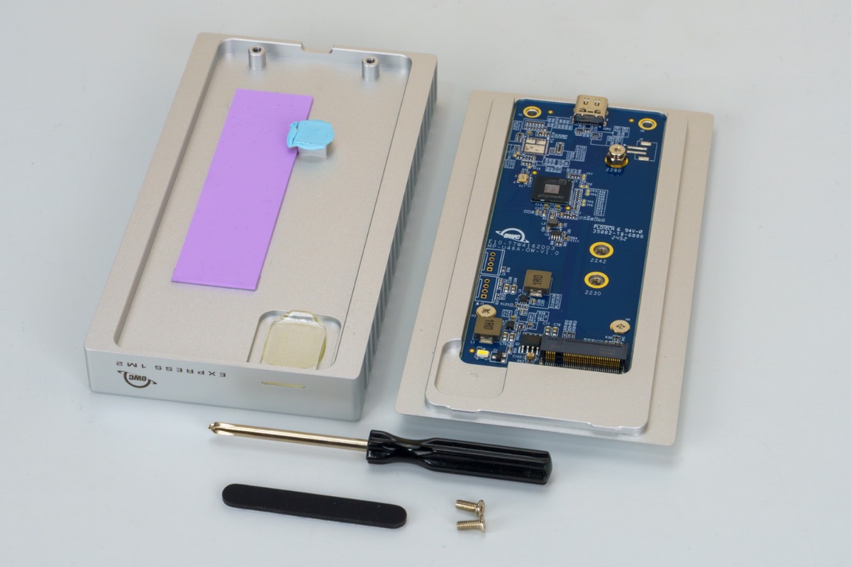 「OWC Express 1M2」には前述のとおり、SSD内蔵モデルとエンクロージャーモデルが用意されている。エンクロージャーモデルは、自分でNVMe SSDを別途購入して装着するタイプだが、使わなくなったNVMe SSDを装着して利用するのもいい。筆者は、購入したノートPCのストレージを換装して大容量化することが多く、余剰のNVMe SSDを所有している。そうしたNVMe SSDを外付けストレージとして蘇らせるアイテムとしても最適だ。ドライバーも同梱されているので、装着は誰でも簡単に行える。