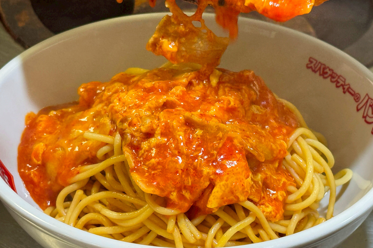 ナポリタン専門店「スパゲッティーのパンチョ」は、8月16日から9月末まで、期間限定メニュー「スタミナ辛たまスパ」を販売します。小(300g)1190円、大(500g)1390円。