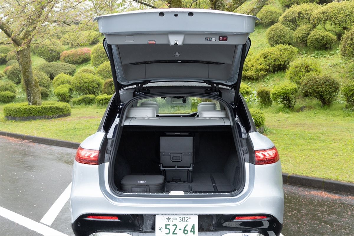 ラゲッジを見て驚きました。まず、バックドアがとんでもなく分厚いではありませんか。これなら追突事故を受けても、大切な荷物には傷ひとつなさそうです。続いて、見た目に反して容積が少ないことに驚き。狭くなっている理由はひとつ、ボトルクーラーがあるから。それを見て寺坂さんは「ボトルクーラー、いるんですか?」と思ったとか思わなかったとか。