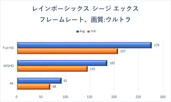 「レインボーシックス シージ エックス」は、グラフィックスなどが向上されるとともに、無料化され再び人気となっている。グラフィックスはプリセットで「ウルトラ」を選び、内蔵ベンチマークを3種類の解像度で実行している。
