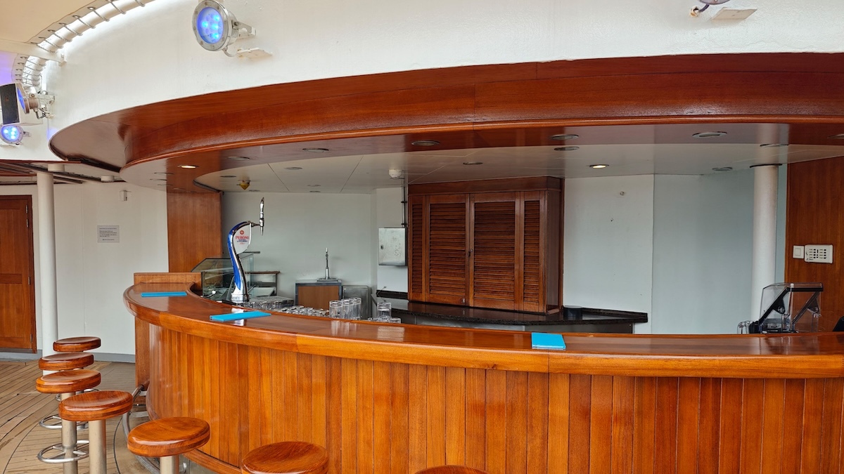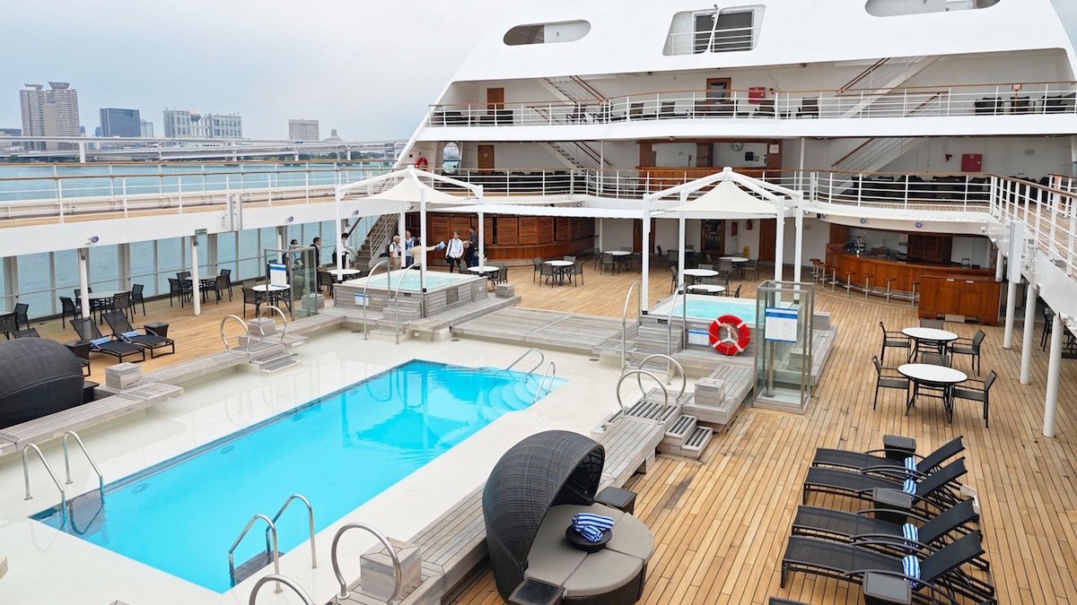 中型船とはいえ、クルーズ旅行に必須の施設は充実しています。プールは船体中央にある「プール湖畔」のほか、船首と船尾にも配置。プール湖畔にはバーカウンターのほか、軽食が食べられるレストランもあります。