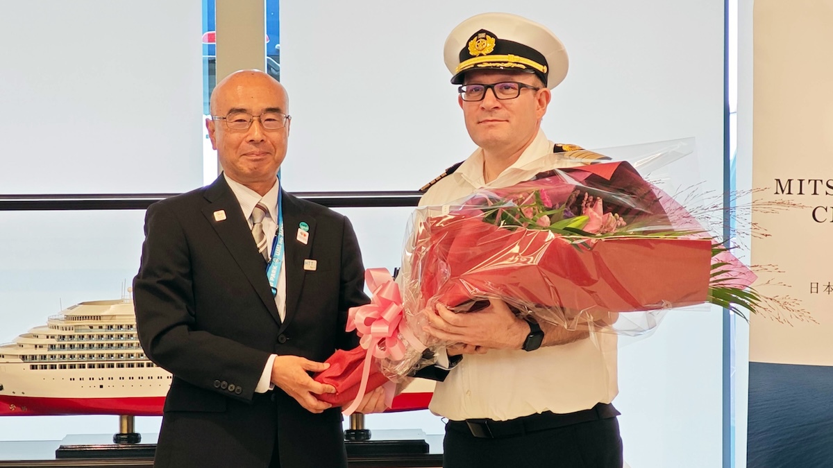 初入港を迎える8月7日には、「MITSUI OCEAN FUJI 晴海客船ターミナル 入港歓迎セレモニー」を開催。東京港管理事務所の菊田裕司所長から、MITSUI OCEAN FUJIのサイモン・ダニエル・ウエストォルキャプテンへの花束贈呈イベントなどがありました。