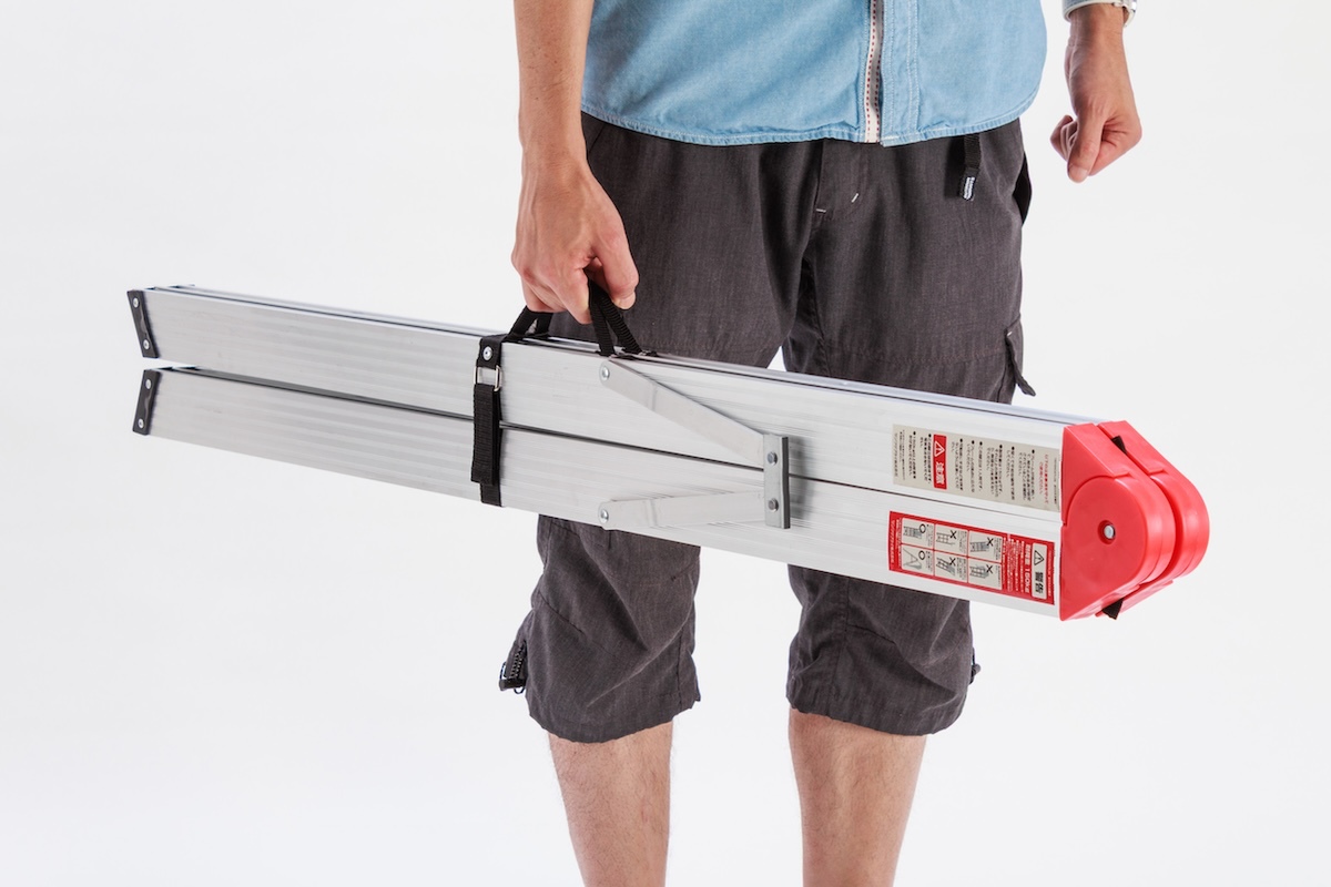 一般的な脚立も折りたたみめますが、あくまで奥行き方向だけ。これに対して150-SNCSTL36は、横幅方向にも折りたたむことが可能で、スティック型となるのが特徴です。