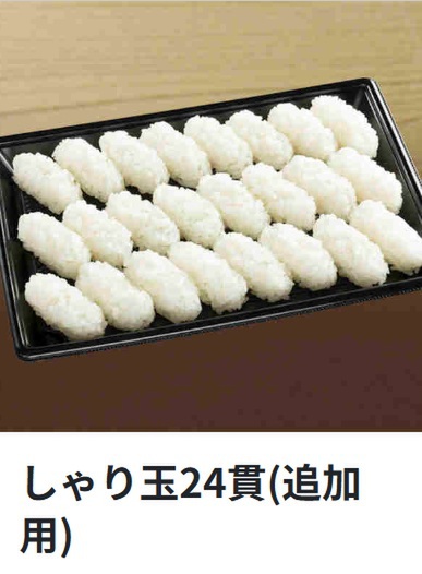 実はスシローでは、“しゃり玉”だけの持ち帰りも可能です。「しゃり玉24貫」(390円~、店舗により価格は異なる)は手巻きセットの“追加用”として案内されていますが、スシローに問い合わせたところ、このしゃり玉だけでも購入可能だそうです。