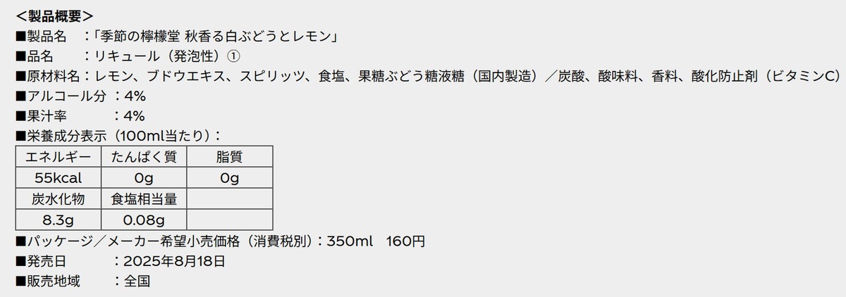 発売時期はまだ残暑が厳しい頃ですが、檸檬堂とともに季節の移ろいを感じられるかもしれませんね。