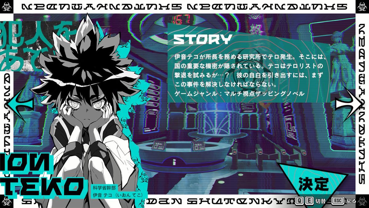 3つ目は「マルチ視点ザッピングノベル」の科学省 伊音テコルート。複数のキャラの視点を切り替えながらお話を読み進め、プレイヤーの選択によって展開が分岐するのが特徴だ。場合によっては1つ前の選択に戻って「やり直し」する必要も。
