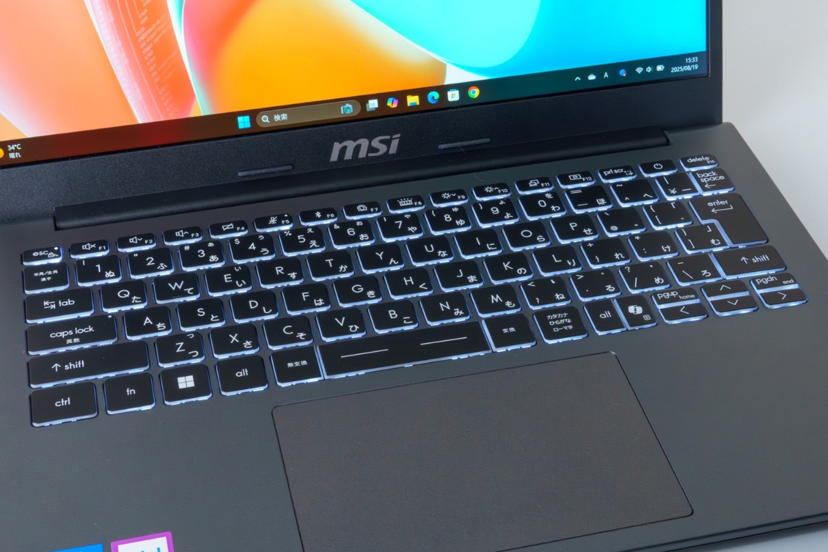 グラフィックスは内蔵GPUの「Intel graphics」で、メモリーは32GB DDR4、ストレージは1TBのNVMe SSDを搭載する。ボディカラーはプラチナグレイのみで、天板にはMSIのロゴが刻印されており、モダンでシンプルなデザインになっている。米国MIL規格「MIL-STD-810H」に準拠したテストを実施しており、剛性も高い設計になっている。