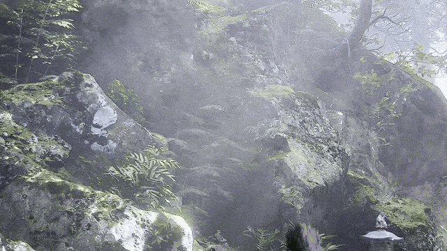 同じようなシーンをGeForce NOWのRTX 5080で試したもの。もやを通して見える木々のディテールがしっかり描かれている(画角が完全一致してないのは、撮影の合間にもデモ機を動かして確認する人が絶えなかったためである)