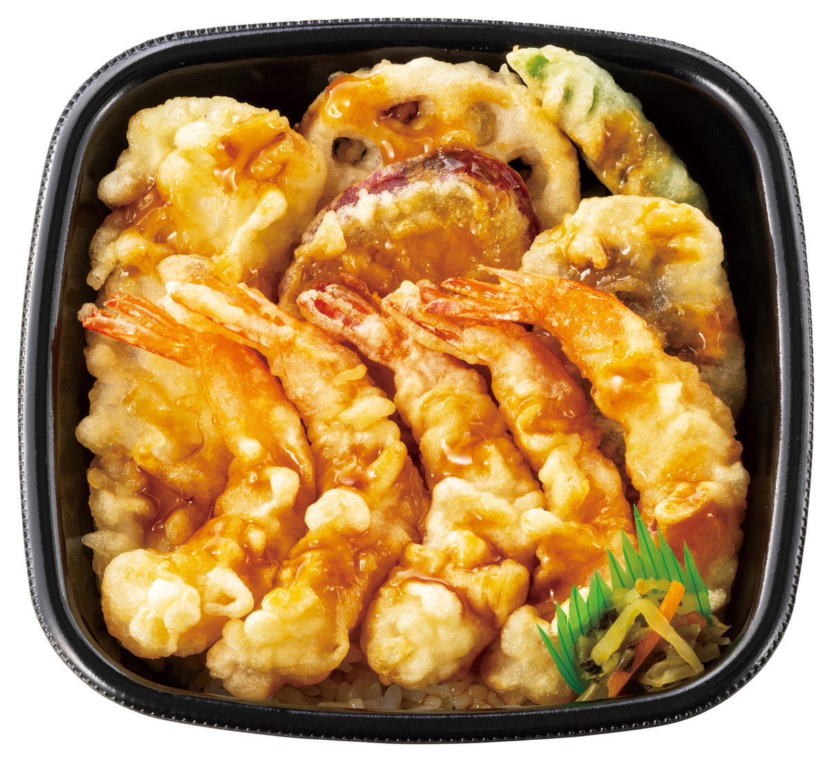 エビを贅沢に5尾盛り付けた“上”や、玉子でとじた“天とじ”、もち麦ごはんを使用した“もちミニ”など、多彩なメニューをラインアップします。