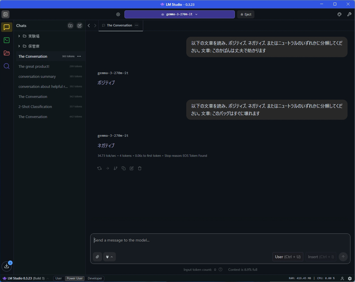 試しに、「LM Studio」で「Gemma 3 270M」をローカル動作させてみた。とにかく回答速度が速いので驚く。これなら、クラウドのサービスを使うよりも快適だ。とはいえ、簡単な質問には答えるが、少し複雑なタスクをさせようとするとすぐに破綻するのは想定通り。